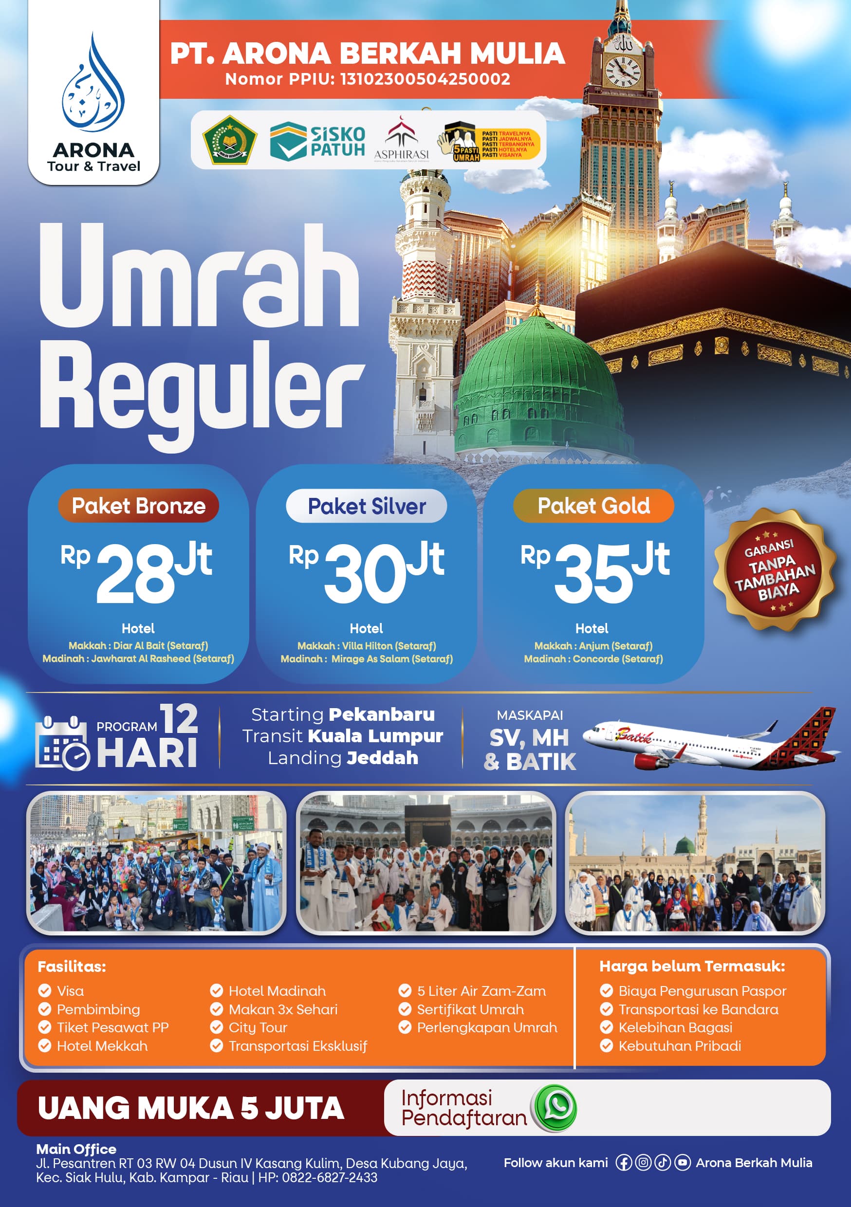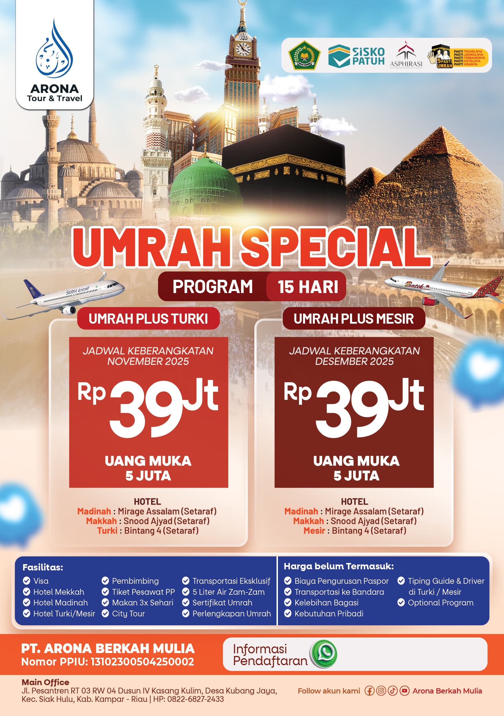 Jangan lewatkan kesempatan beribadah di Tanah Suci dengan tenang dan nyaman bersama Arona Tour & Travel.