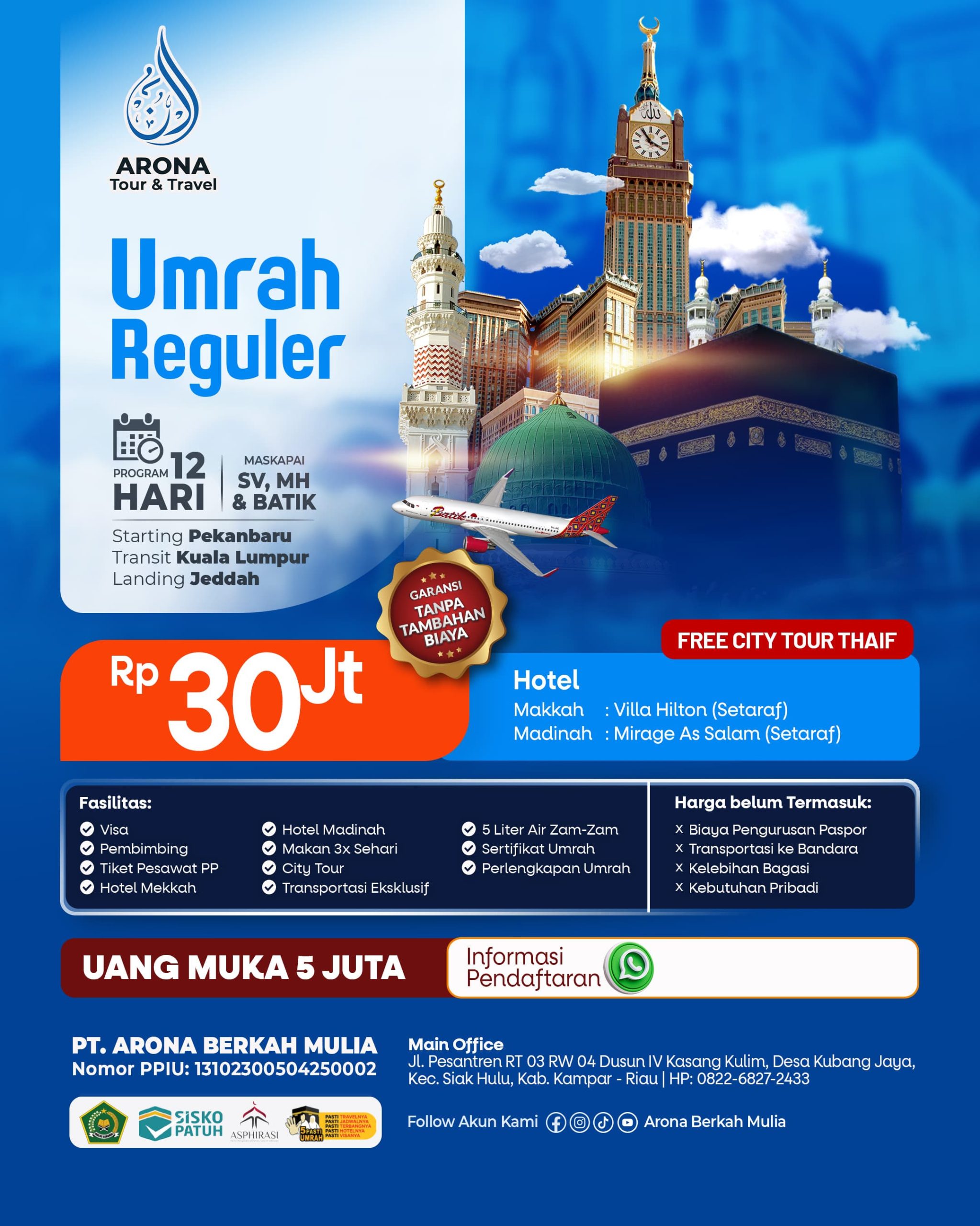Untuk informasi paket umrah dari Arona Tour & Travel silahkan hubungi admin kami…